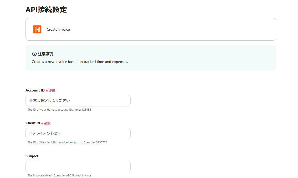 Google スプレッドシートの情報が自動的にHarvestへ入力できると、請求金額や取引先情報の入力ミスを防止できます。