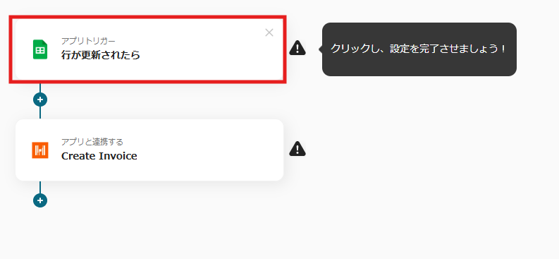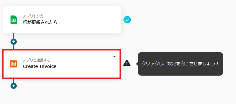 1) フローに戻り、「アプリと連携する Create Invoice」のアイコンをクリックします。