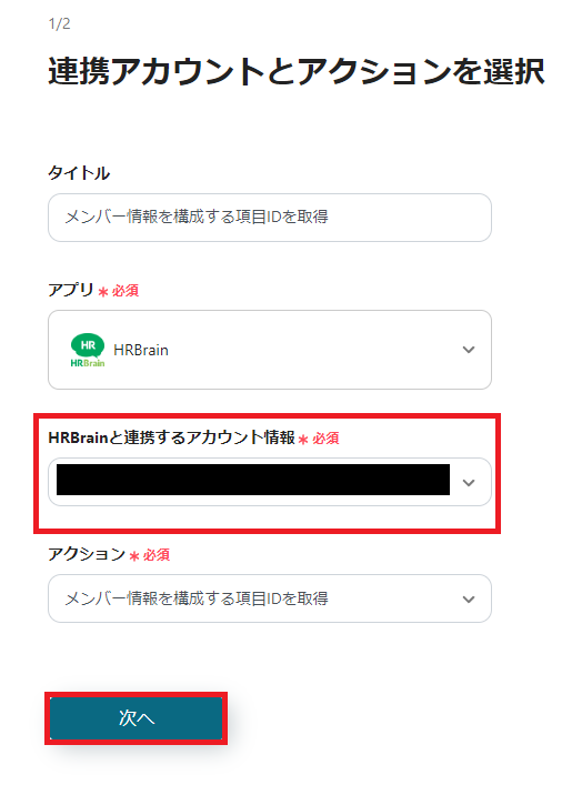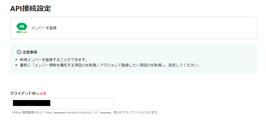 最後に「メンバー情報を構成する項目IDを取得」を選択して、連携するアカウント情報を入力してください。