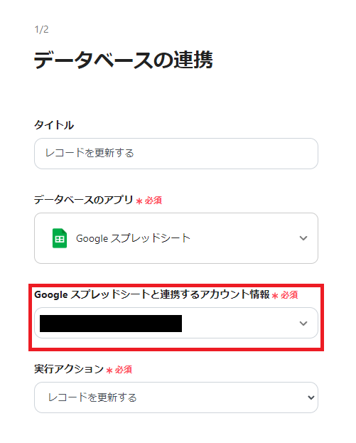 「データベースの連携」の項目が出てくるので、必要事項を埋めて「次へ」を押します。