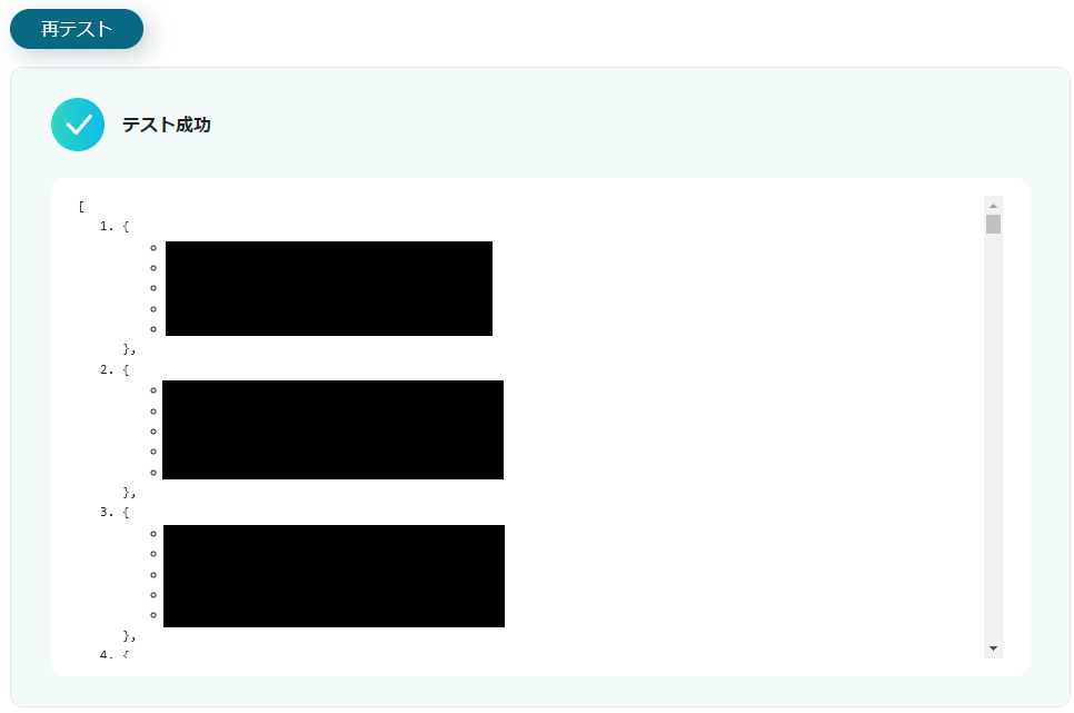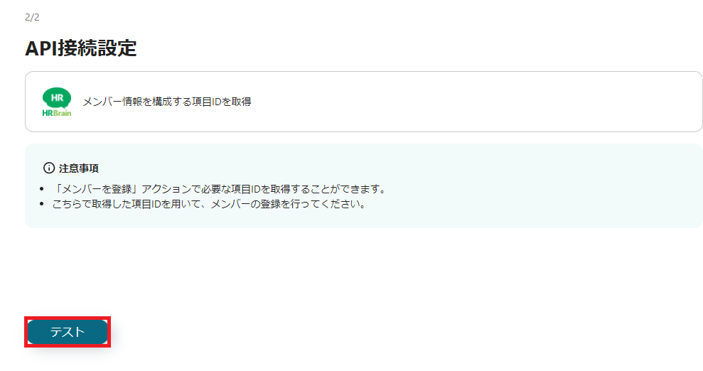 テストボタンを押すことで、項目IDを取得する際の動作確認が可能です。