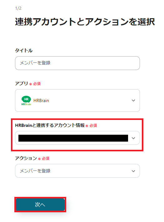 次に「メンバーを登録」を選択して、連携するアカウント情報を入力してください。
