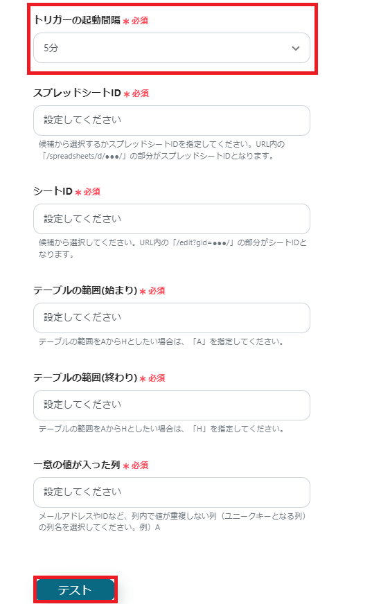 ※特に一意の値が入った列は必ず一意の値がある列を設定してください。値が重複していると正しく動かない場合があります。