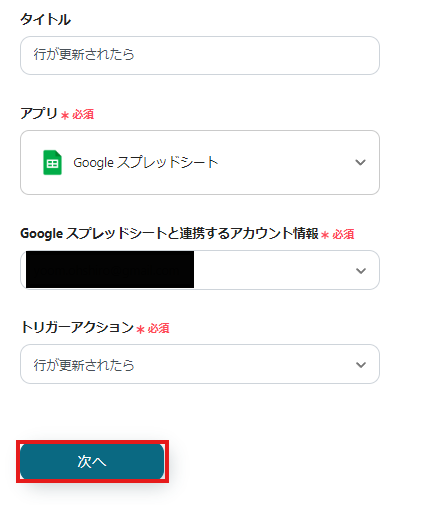 まずは、アプリトリガー「行が更新されたら」をクリックしましょう。