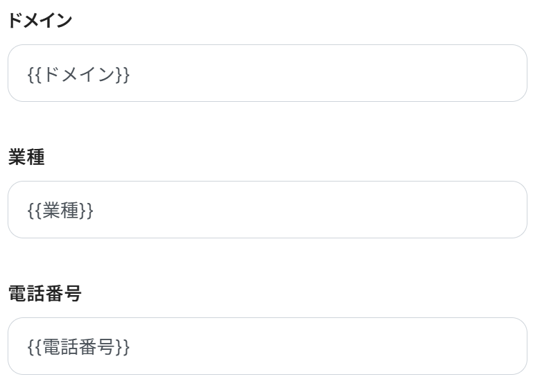 こちらでは、Google スプレッドシートで設定した項目名が表示されます。