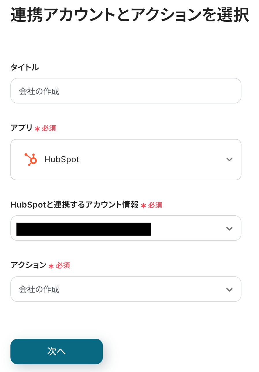 続いて、HubSpotで会社を作成する設定を行うため、「会社の作成」をクリックします。
