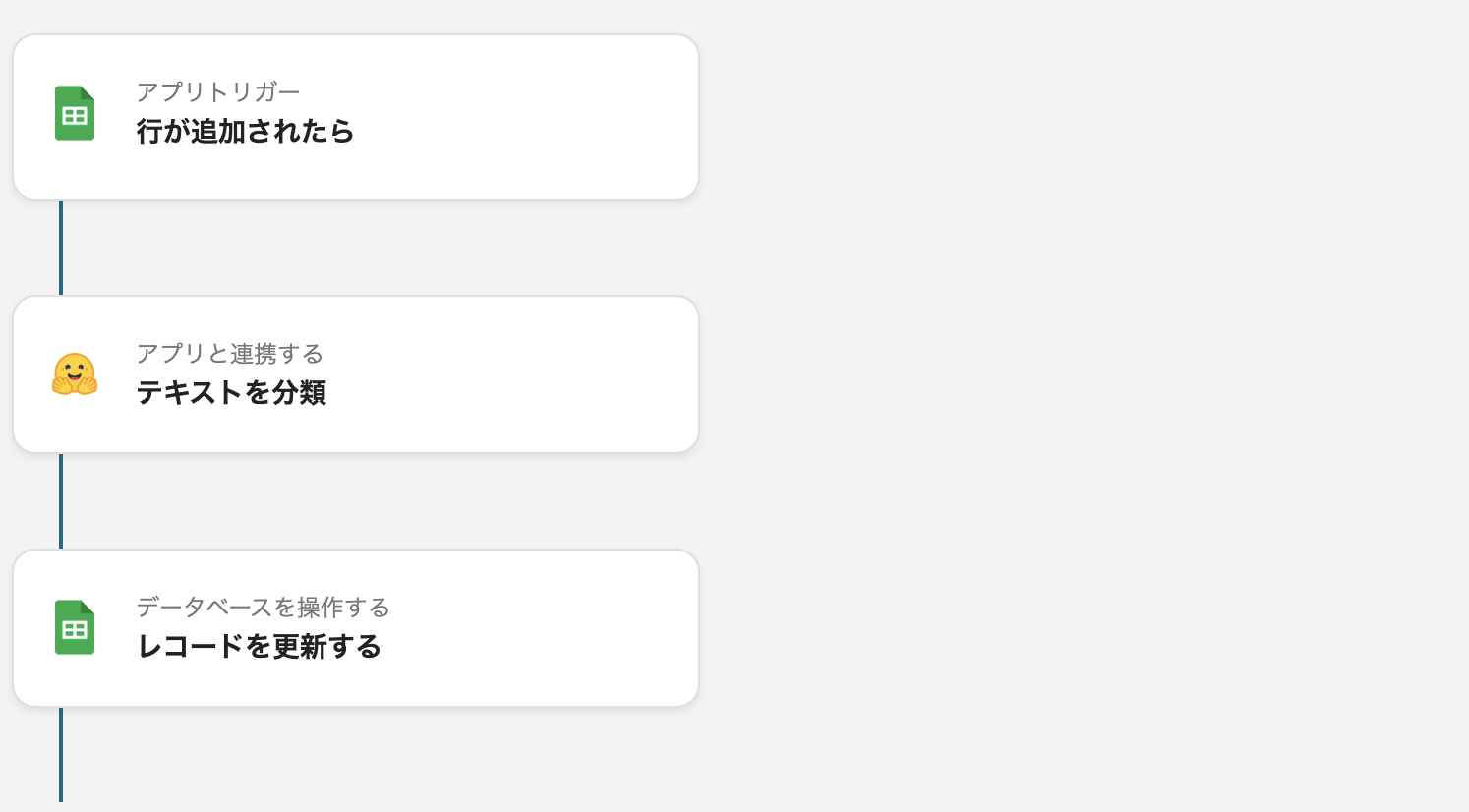 従来手動で行っていた回答内容のHugging Faceへの転記作業とHugging Faceで割り出した感情分析結果をGoogle スプレッドシートへ追加する作業を自動化できます。