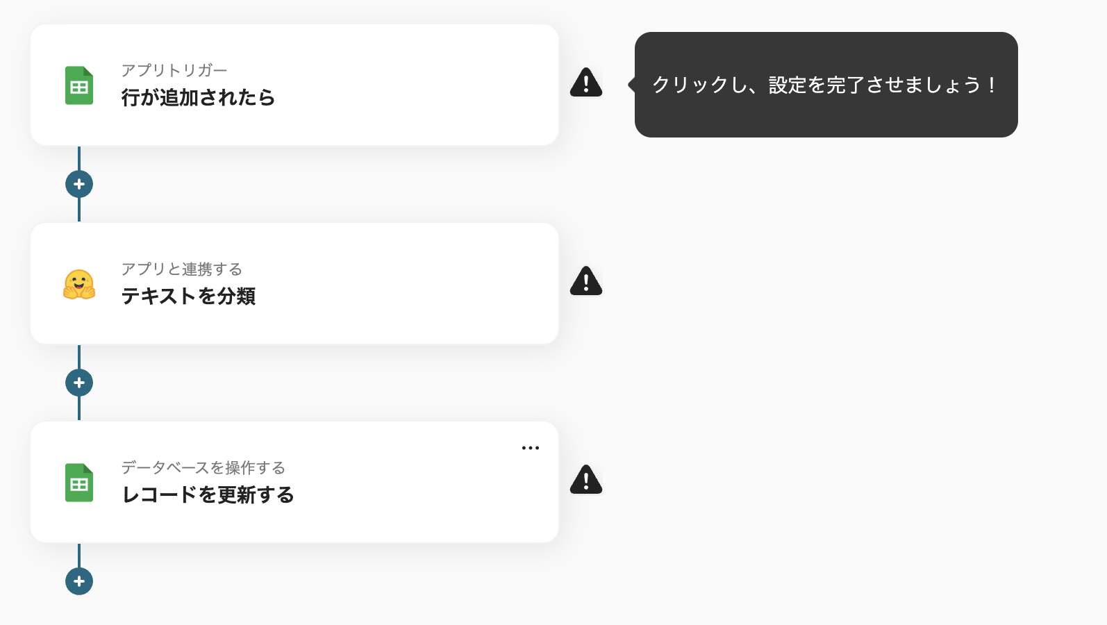 (6)最後に、3つ目のアクション「レコードを更新する」をクリックしてください。
