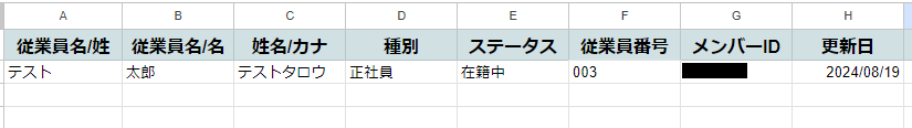 画像のように、従業員名や、従業員番号などの列を作成しておくのがおすすめです!また、メンバーIDと更新日の列は必ず用意しておきましょう。