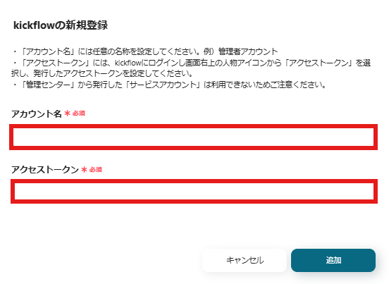 内容に従って赤枠の箇所を入力し、「追加」をクリックします。