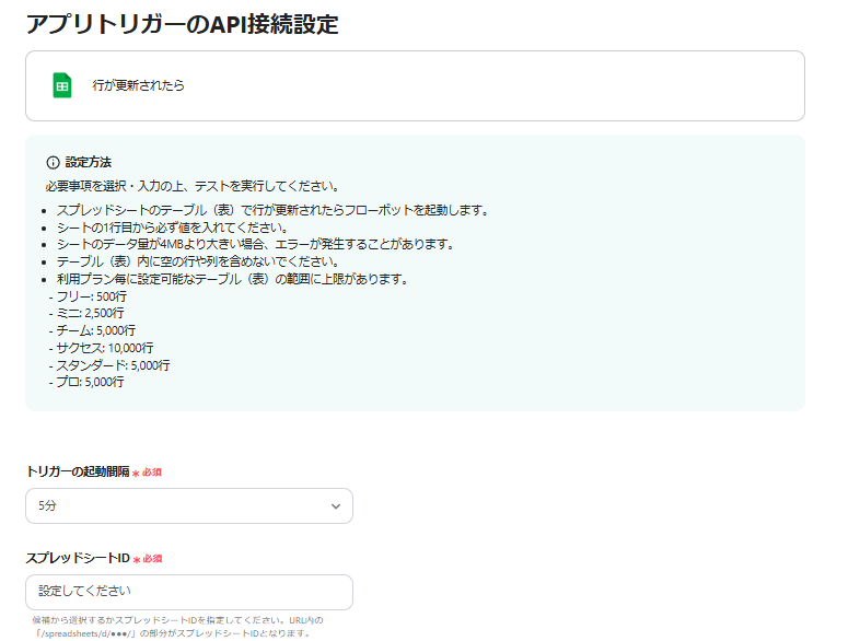 ①Googleスプレッドシートで行が追加されたらkickflowにユーザー情報を作成する