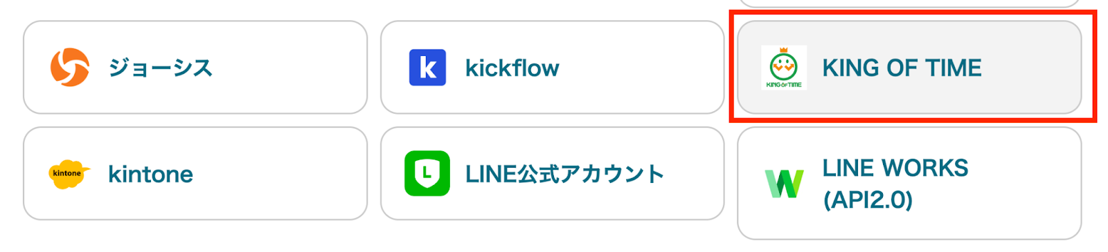 無事、アプリ連携が終わったら一覧部分にGoogleスプレッドシートとKING OF TIMEのアイコンと名前が出ているので確認しましょう。
