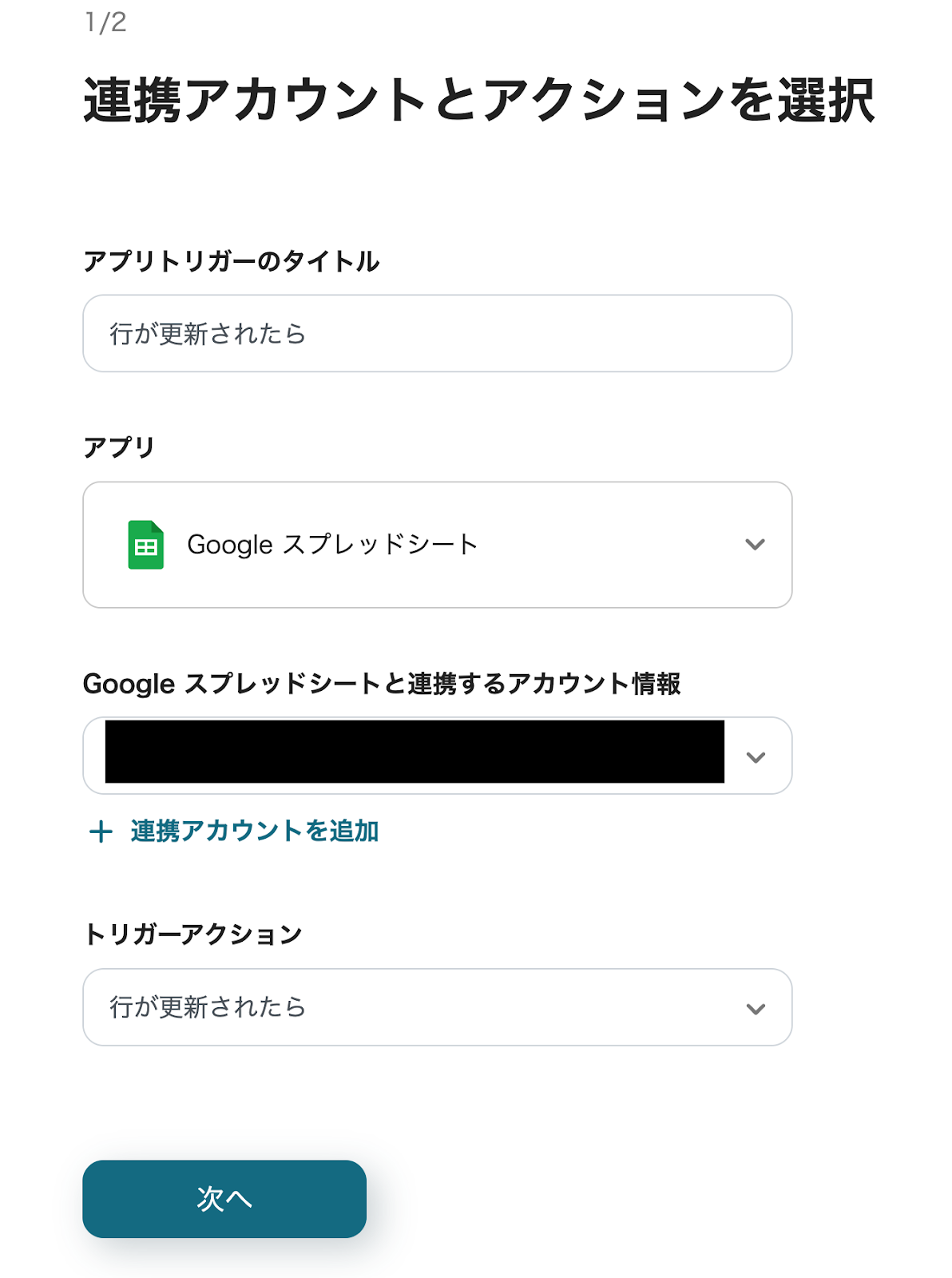フロー3番目を選択すると、今まで同様に連携済みのアカウント情報が反映されている画面が最初に出てきます。