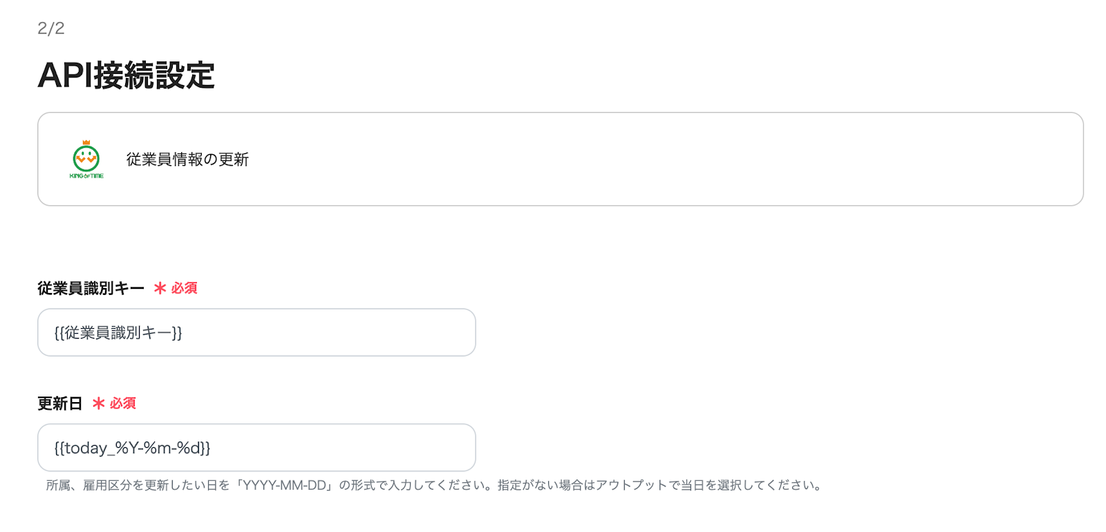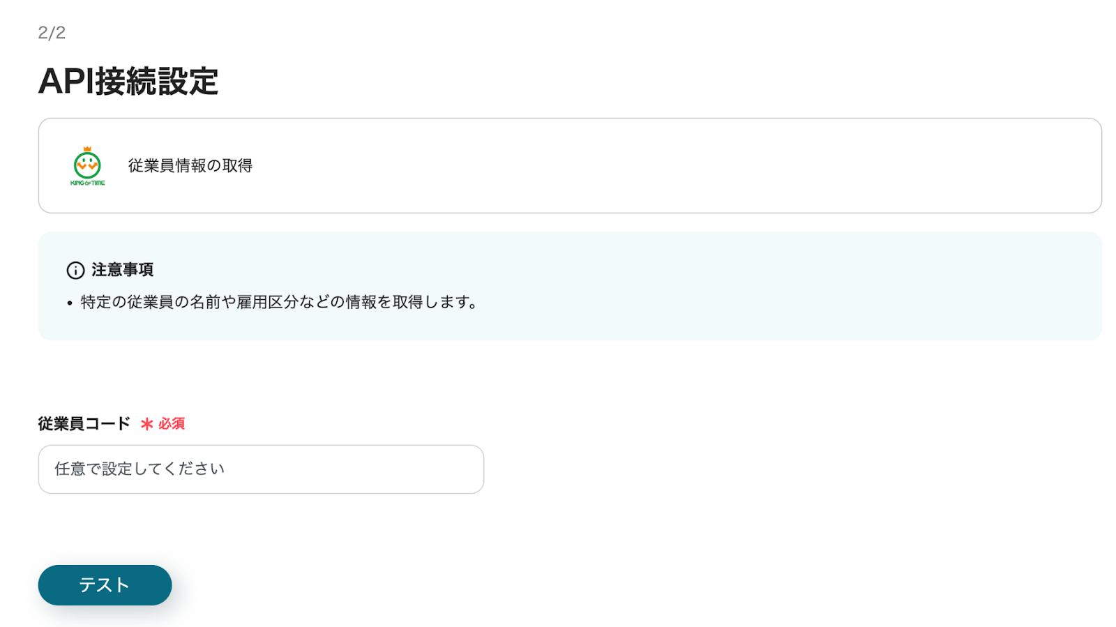 続いて、KING OF TIMEで「従業員情報の取得」のフローの設定を行います。