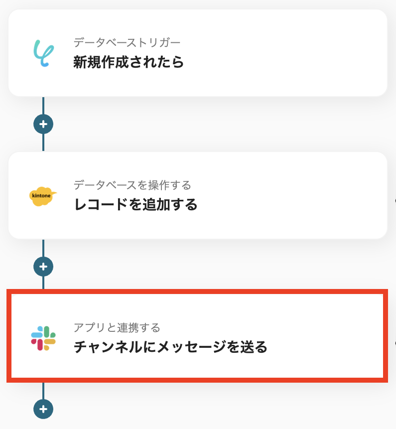 この自動化を導入すると、kintoneにデータが追加された時点でSlackに通知が送信されます。