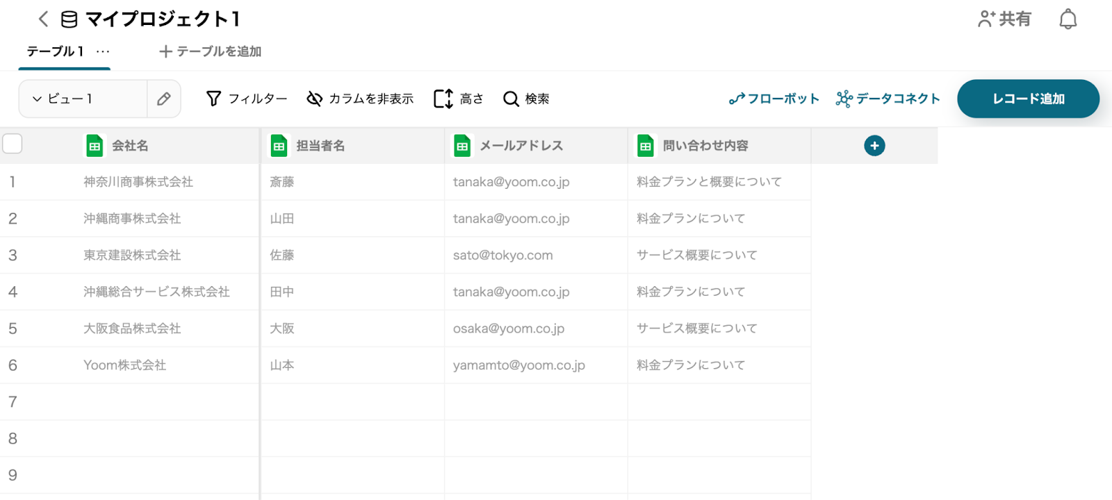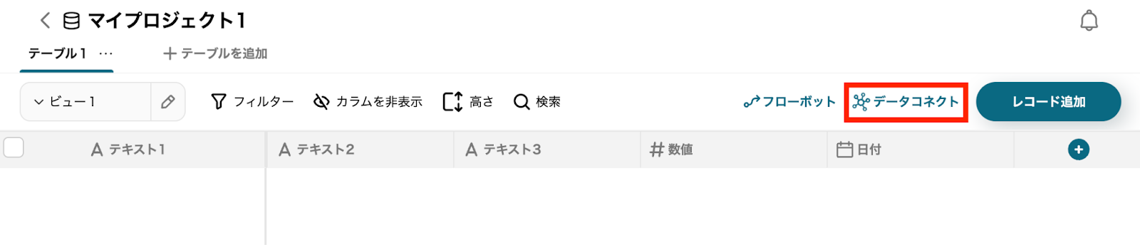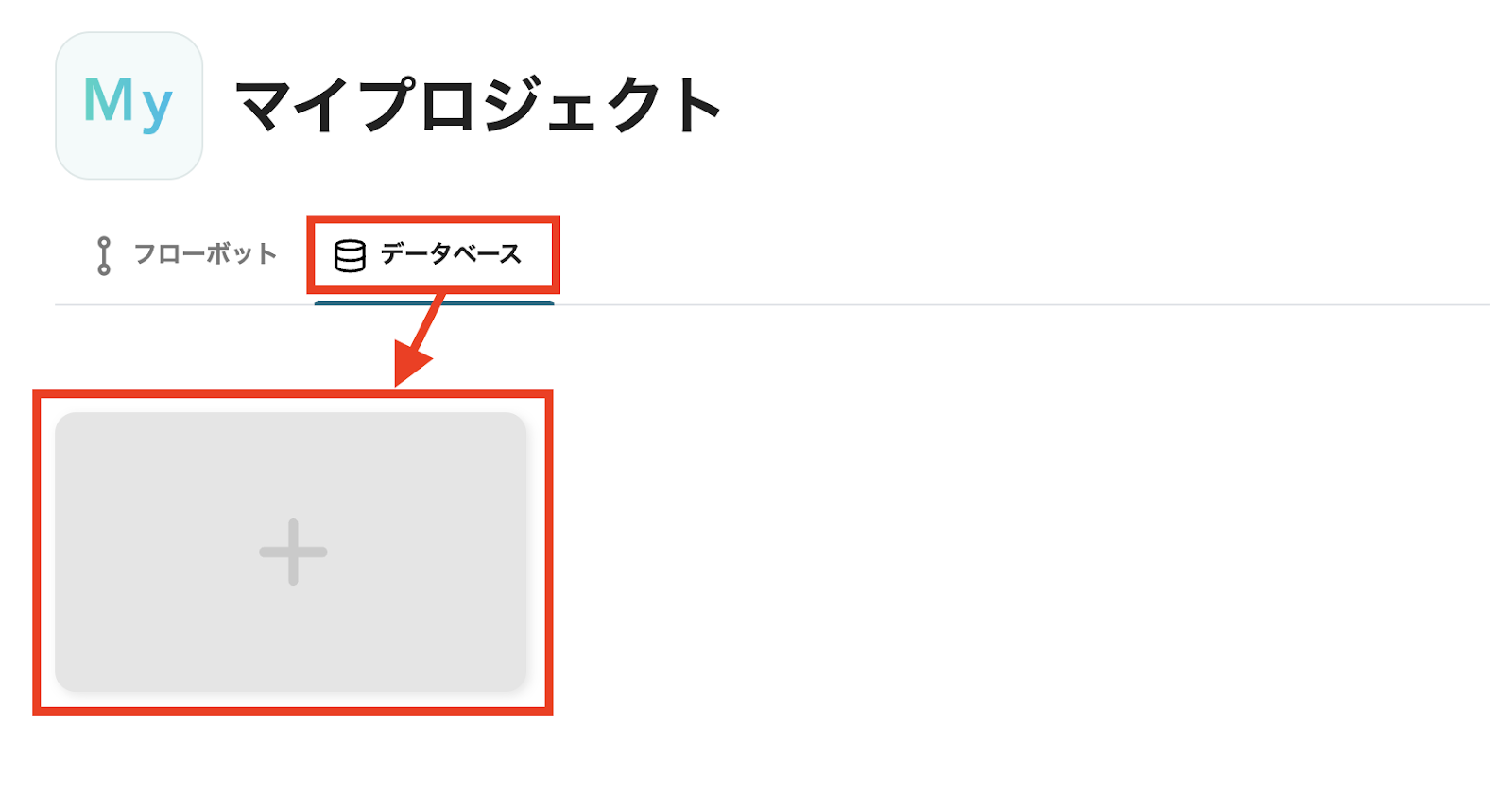 Yoomの任意のプロジェクト画面から、データベースを新規作成します。