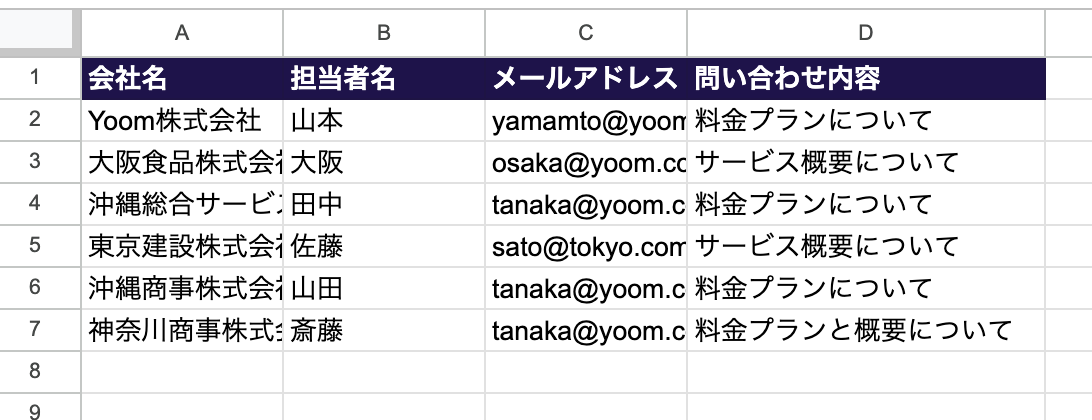 しばらくすると、連携したGoogle スプレッドシートの内容がデータベース上に反映されます。