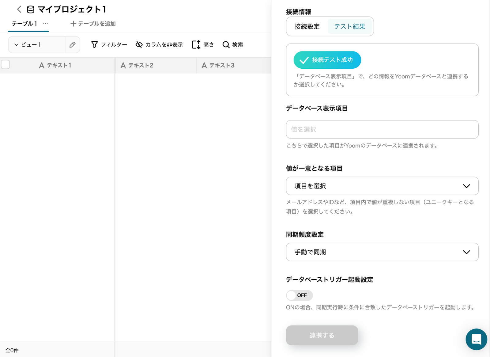 なお、今回はGoogle スプレッドシートをトリガーとして直接使用するのではなく、Yoomのデータベースと同期させる形で作成していきます。