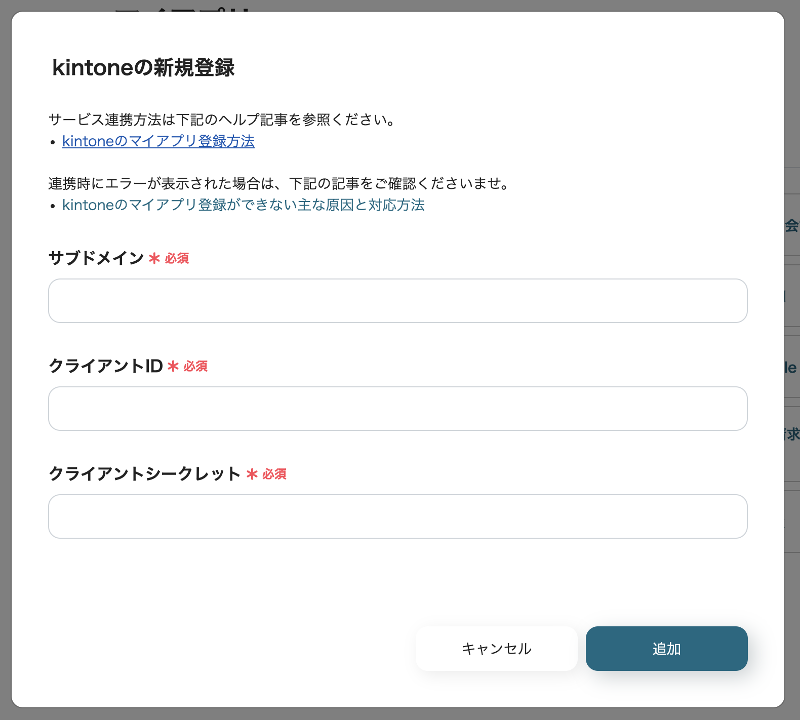 ・kintoneのマイアプリ連携について、詳しくはこちらをご参照ください。