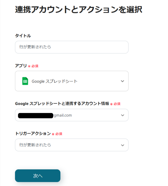 最初の設定は「行が更新されたら」です。