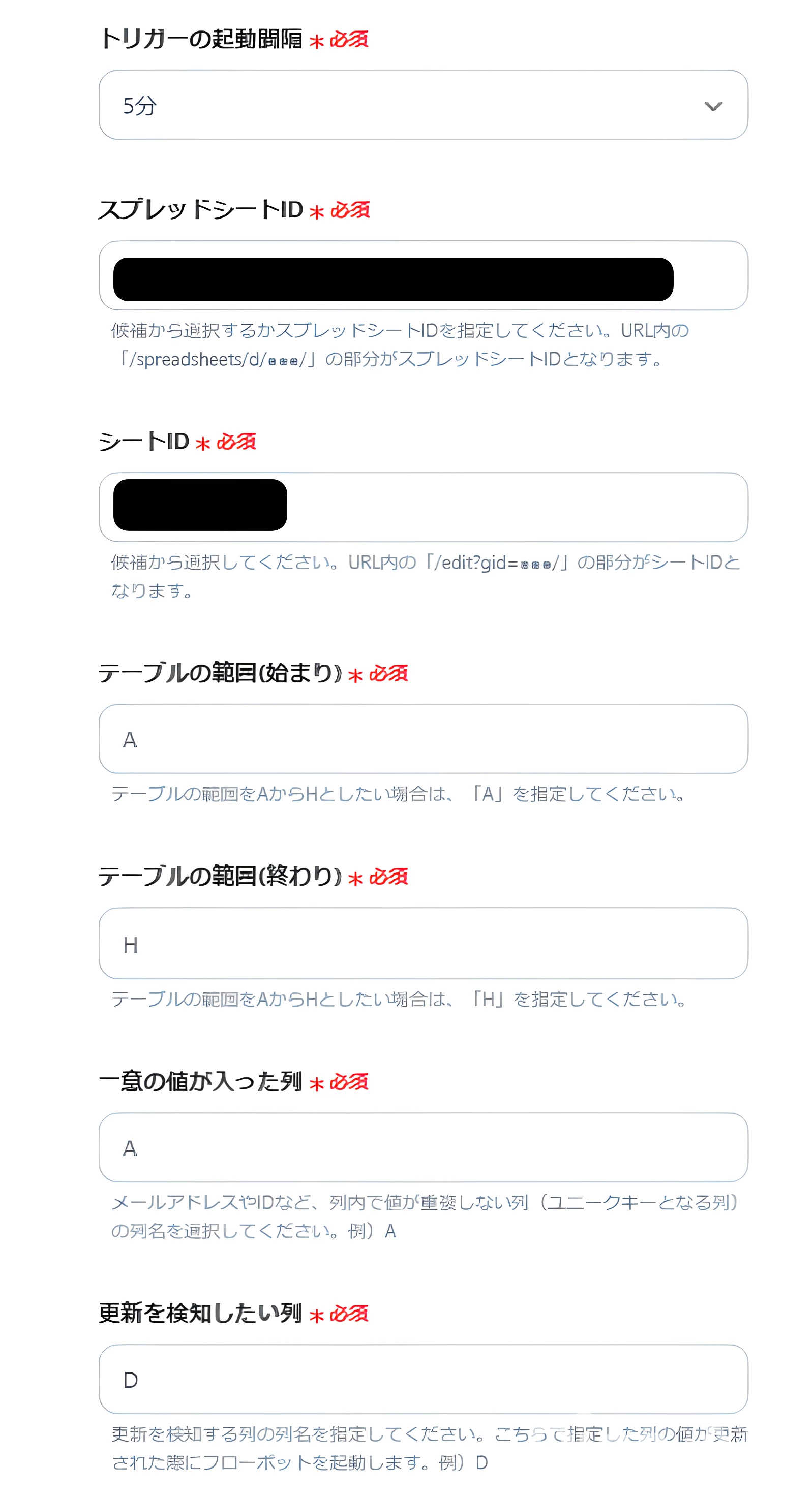指定したシートの行が更新されたら、フローが動き始めるように設定します。
