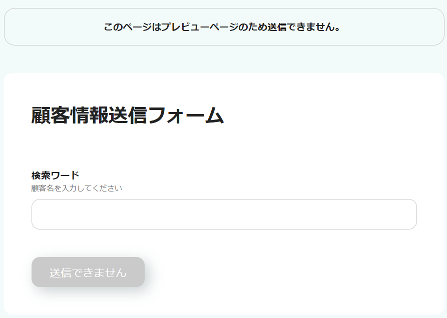 最初に、フォームを活用して顧客情報を検索する設定を行うため、「顧客情報送信フォーム」をクリックします。