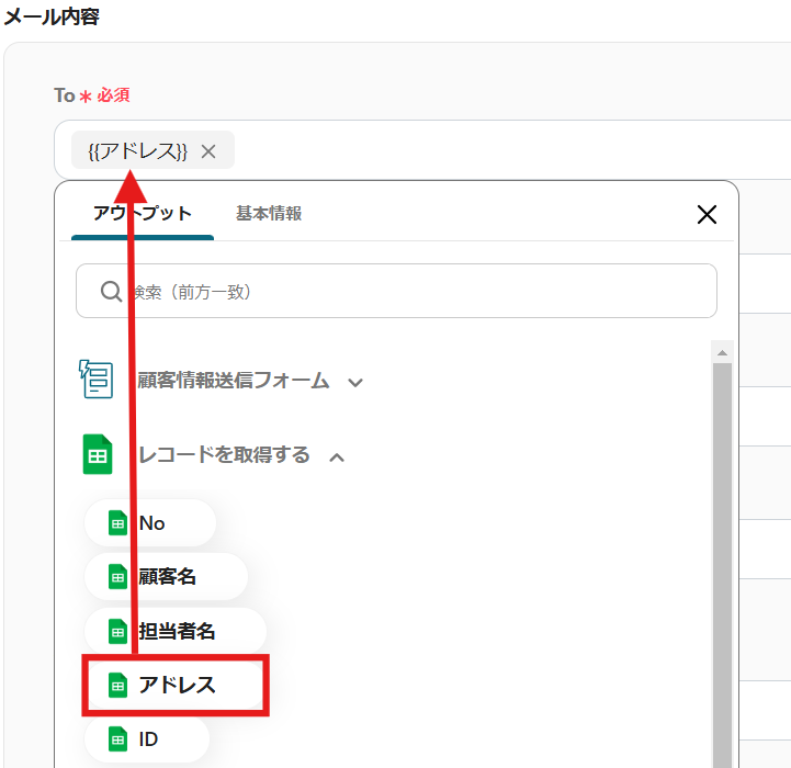 Google スプレッドシートのアウトプットを活用し、「To」を設定しましょう。