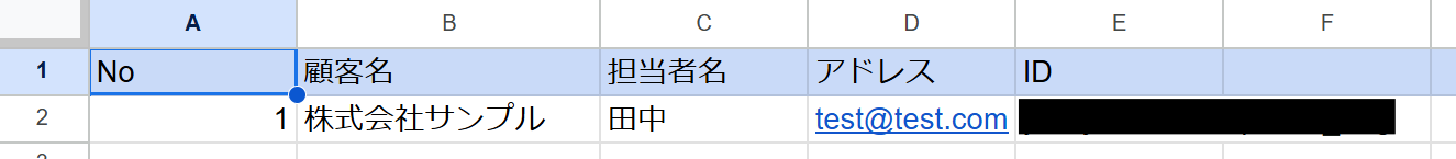 Google スプレッドシートの画面に移動し、顧客情報を取得するために設定を行います。