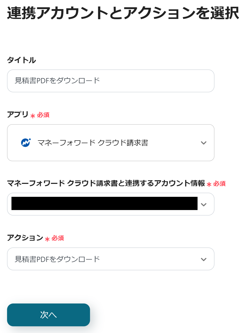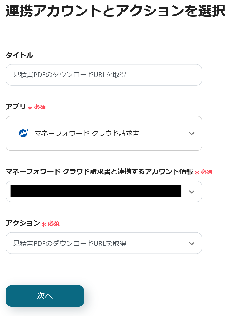 次に、見積書PDFのダウンロードURLを取得する設定を行うので、「見積書PDFのダウンロードURLを取得」をクリックしてください。