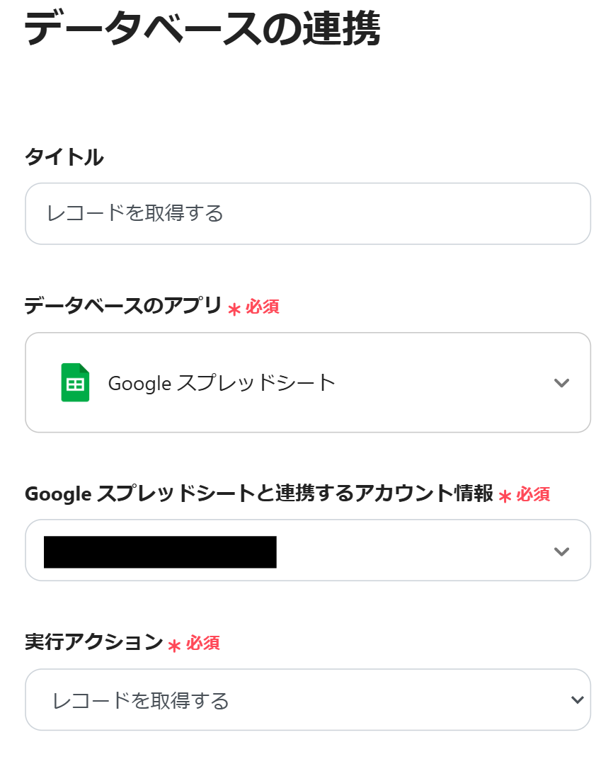 次に、Google スプレッドシートの設定を行うので、「レコードを取得する」をクリックしましょう。