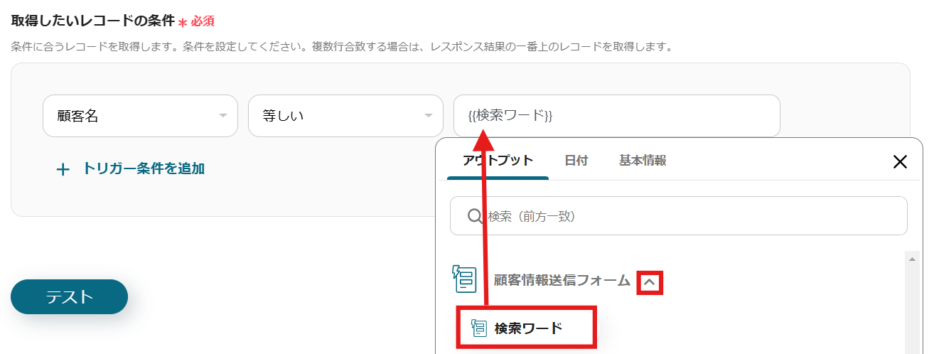 次に、取得したいレコードの条件を設定してください。