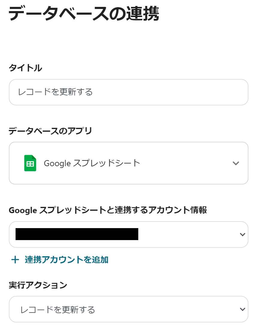 次にGoogle スプレッドシートでレコードを更新する設定を行うため、「レコードを更新する」をクリックしましょう。