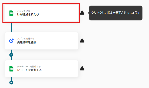ステップ1.アプリトリガーの設定 まずは、アプリトリガー「行が追加されたら」をクリックしましょう。