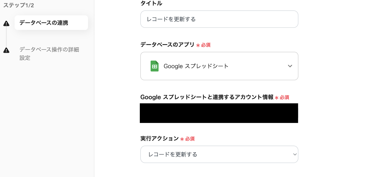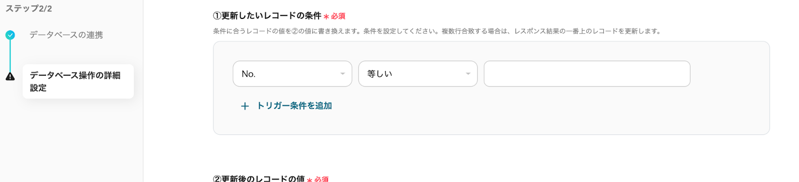 更新したいレコードの条件には、レコードの更新条件を設定します。