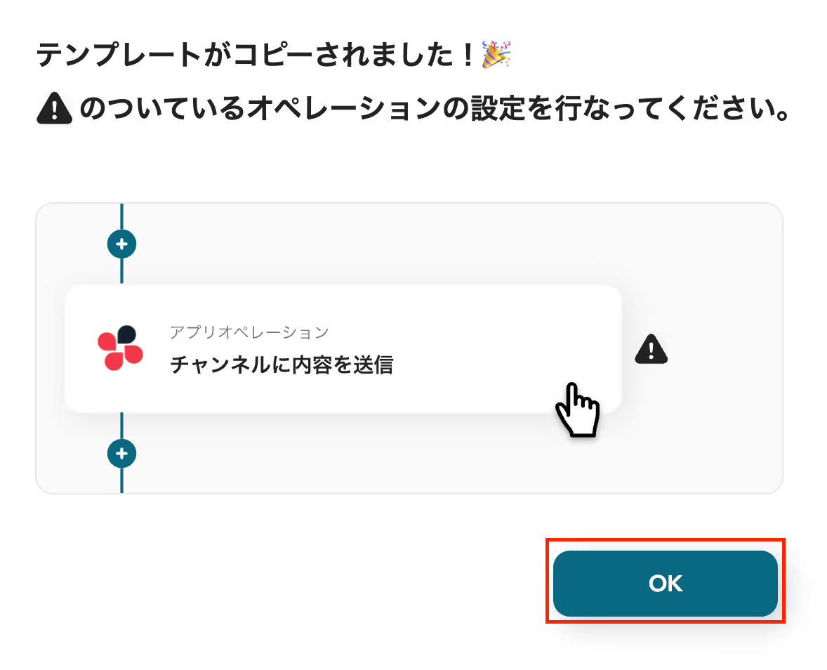 クリックすると、テンプレートのコピーが完了したという表示ができるので「OK」を選択しましょう。