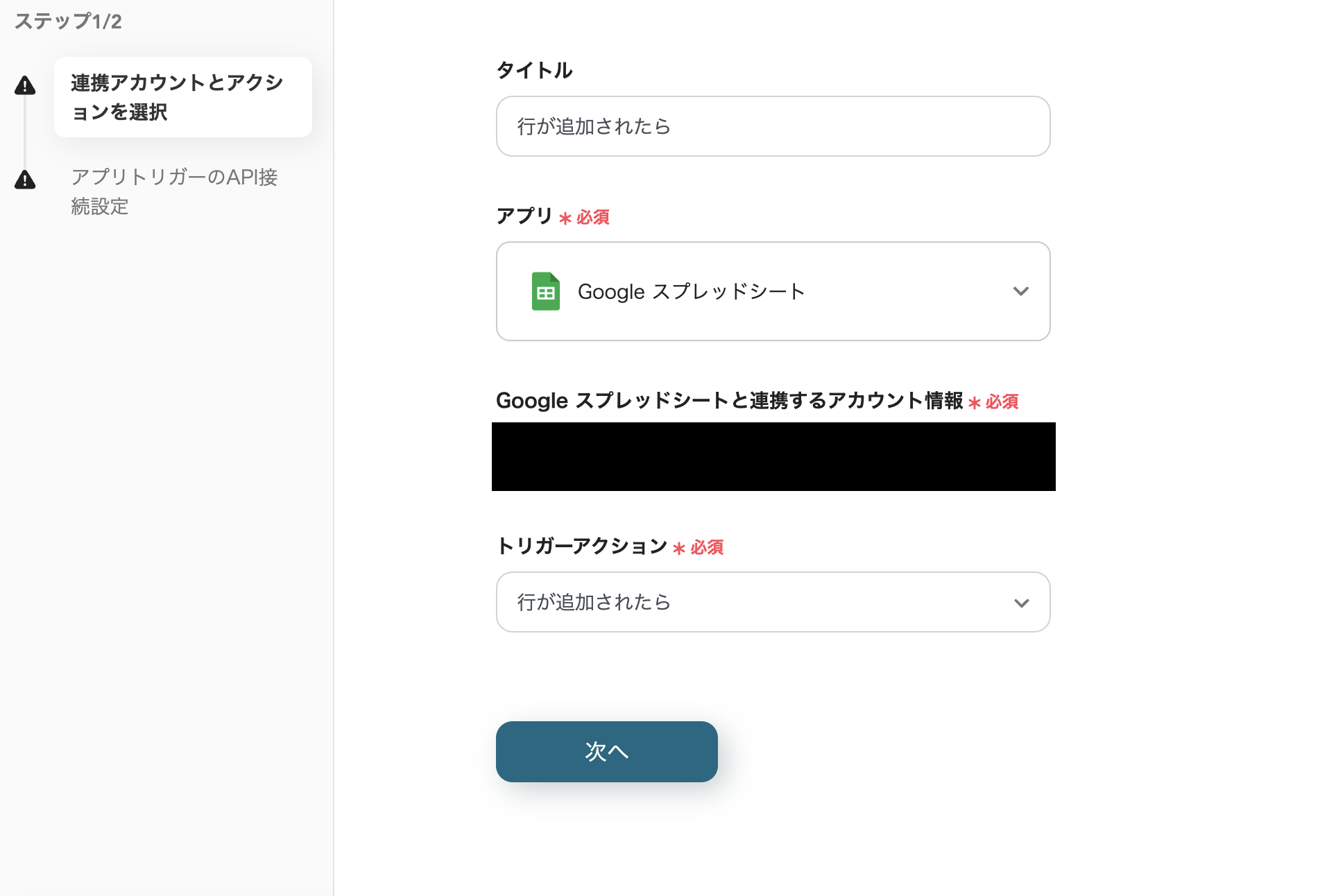 Google スプレッドシートと連携するアカウント情報を確認しましょう。