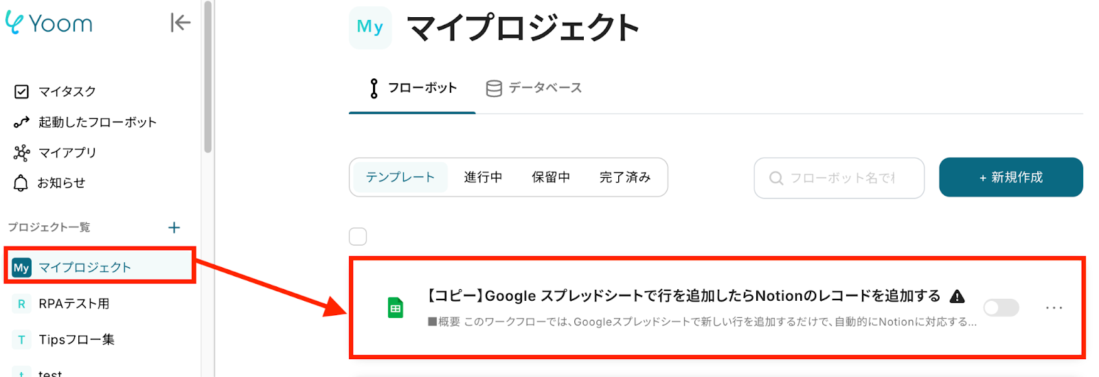 それでは、さっそく実際にGoogle スプレッドシートとNotionを連携したフローを作成してみましょう!