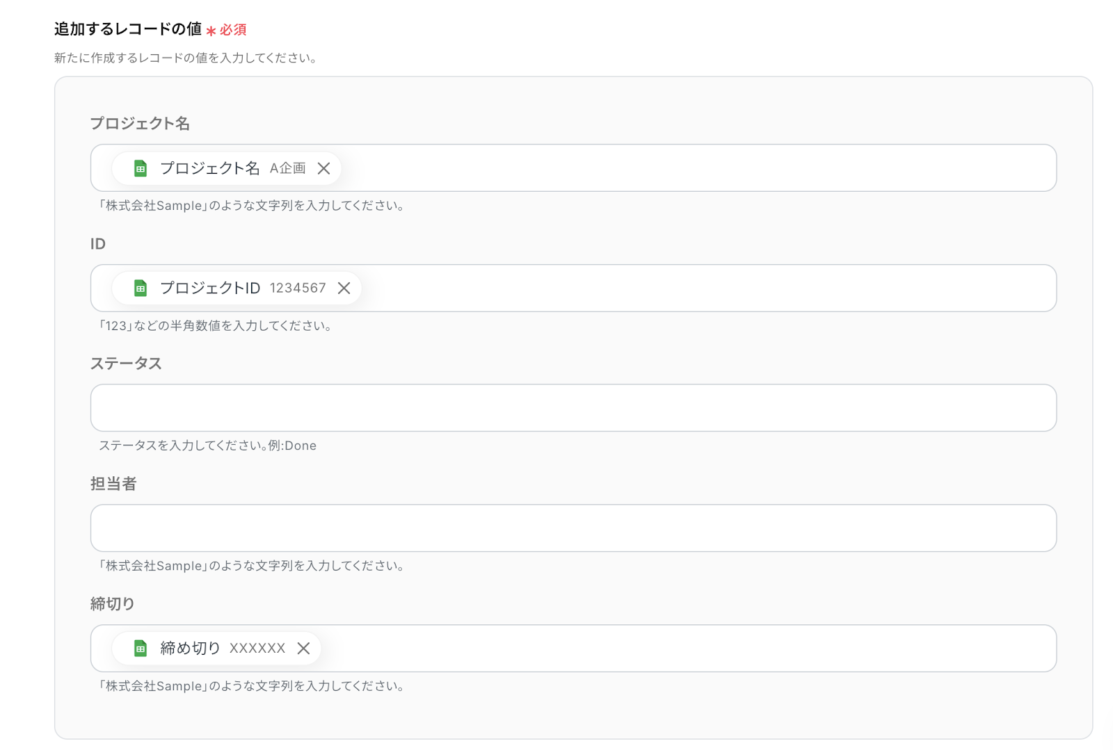 このワークフローでは、Googleスプレッドシートで新しい行を追加するだけで、自動的にNotionに対応するレコードが作成することが可能です。この自動化により、手動でのデータ入力や二重管理の手間を省き、情報の一貫性を保つことができます。