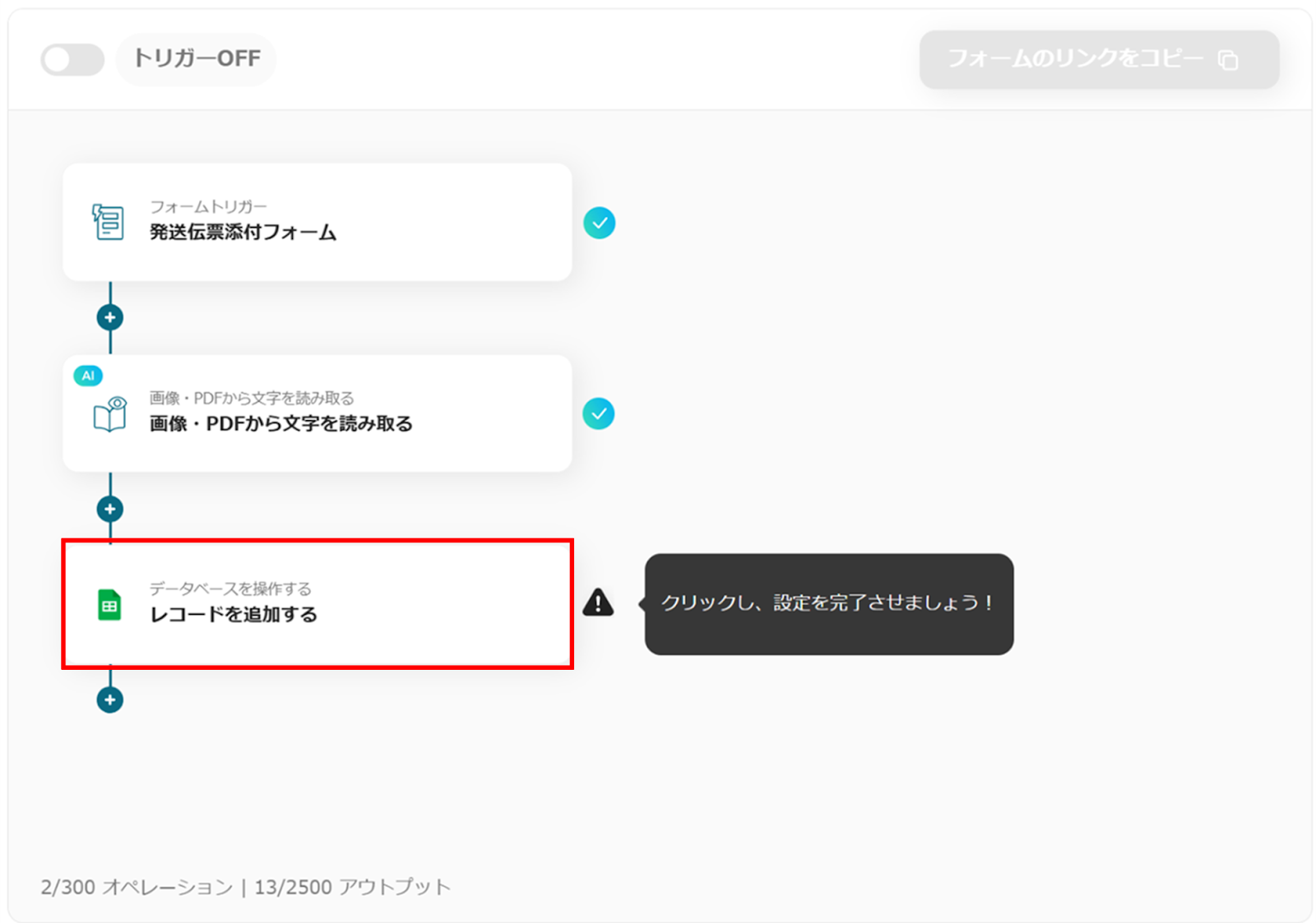 (1)次にGoogle スプレッドシートを連携して、レコードを追加します。