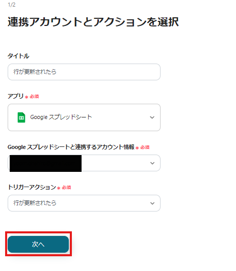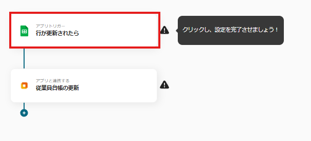 まずは、アプリトリガー「行が更新されたら」をクリックしましょう。