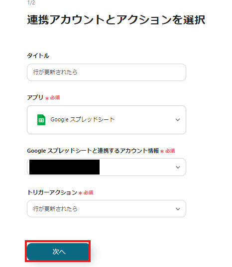 まずは、アプリトリガー「行が更新されたら」をクリックしましょう。