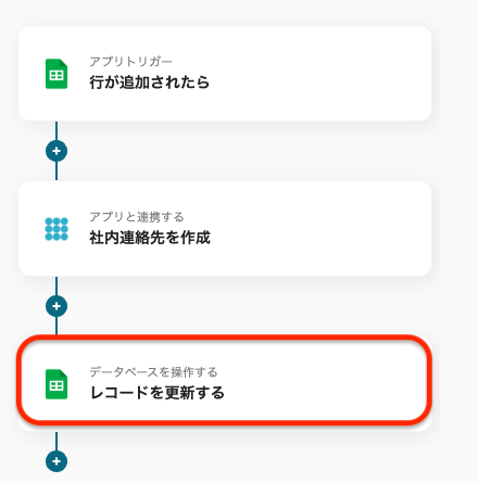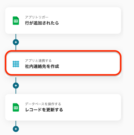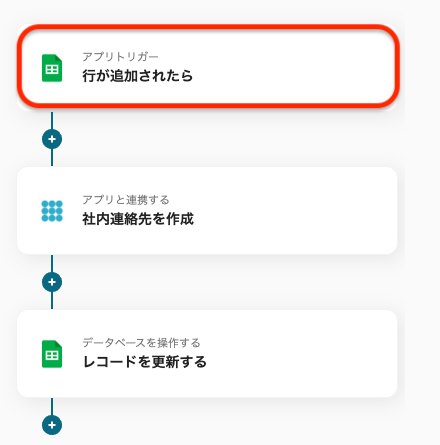 これで、Google スプレッドシートで行が追加されると、PHONE APPLI PEOPLEで自動的に社内連絡先が作成され、Google スプレッドシートの値も更新されます。