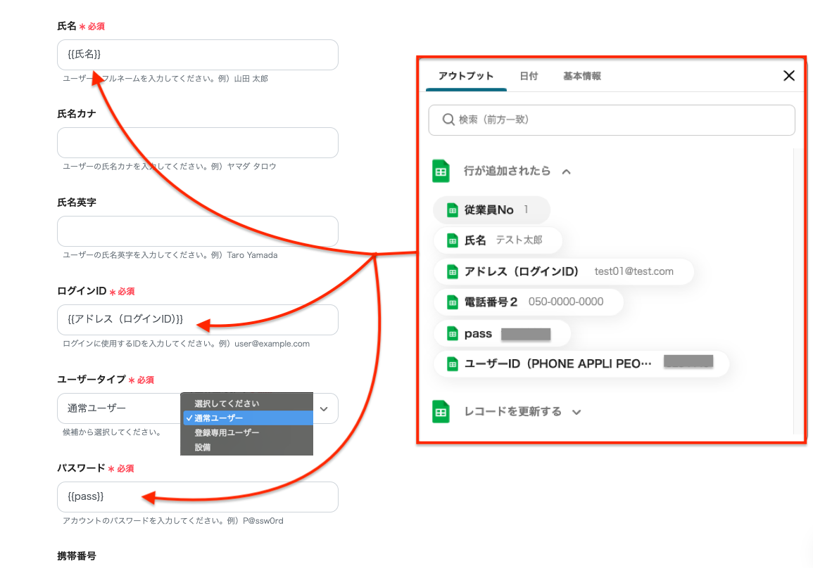 ※「ユーザータイプ」は、任意のタイプを設定してください。