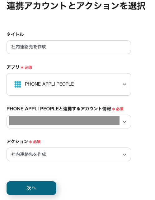 PHONE APPLI PEOPLEのアクションを設定します。