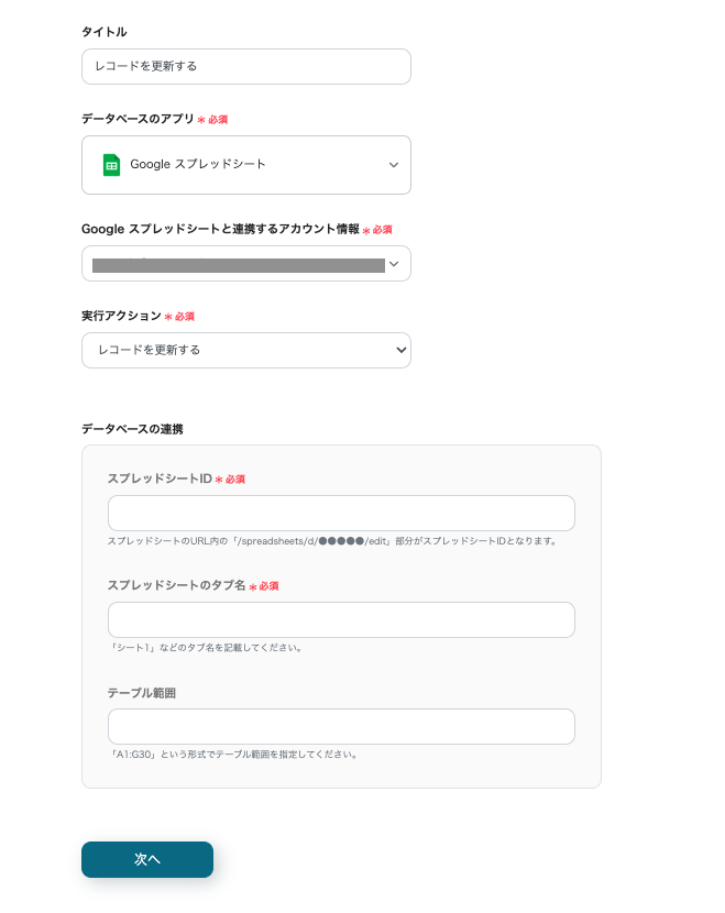 次に、「Google スプレッドシートと連携するアカウント情報」を確認してください。