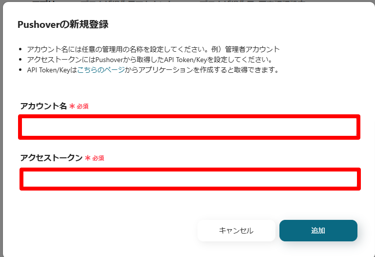 Google スプレッドシートとPushoverをYoomに接続する方法を説明します。