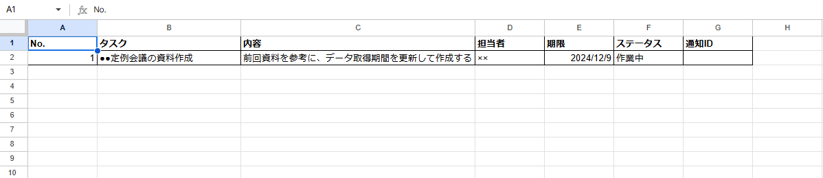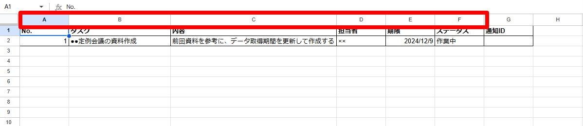 追加したいタスク管理を行っているGoogle スプレッドシートを用意しましょう。