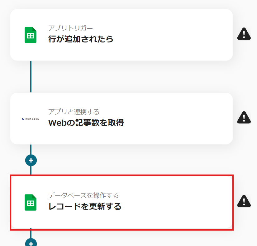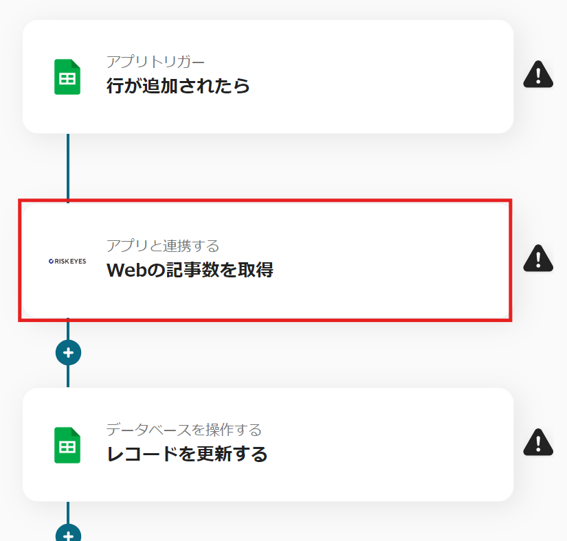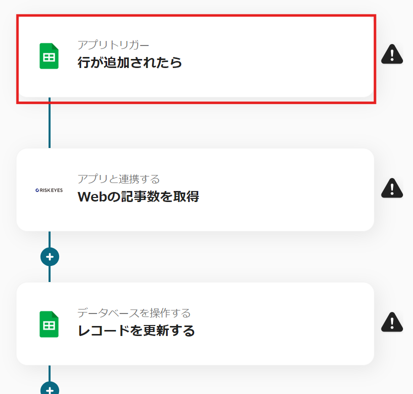12)これで【Googleスプレッドシートでキーワードが追加されたらRISK EYESでWebの記事数を取得する】というフローの完成です。