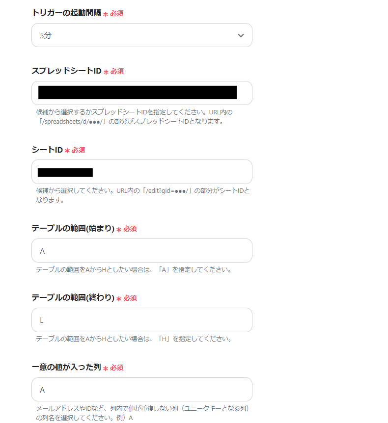 スプレッドシートIDやシートIDはアプリ登録できているので、候補から選択できます。