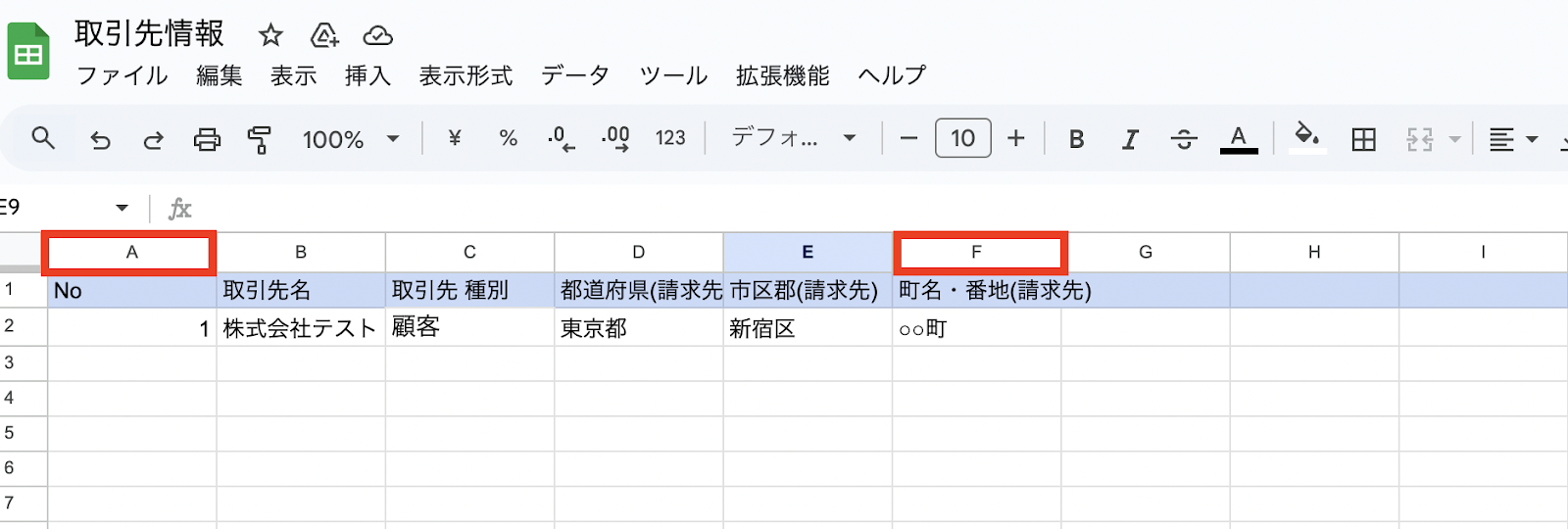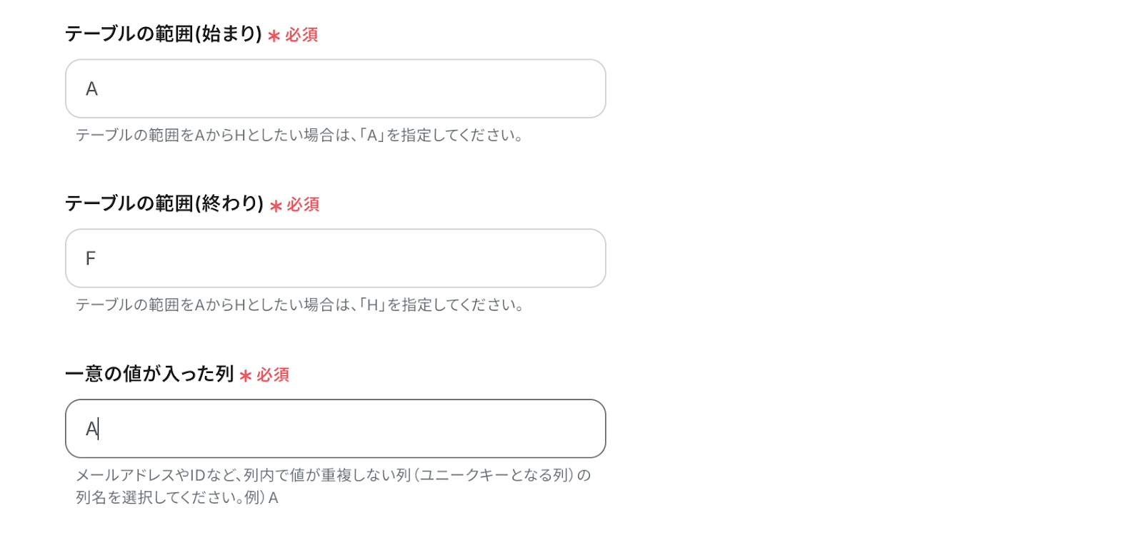 今回は、テスト版として、以下のようなGoogle スプレッドシートを作成しました。 そのため、このシートに合わせた範囲を入力しています。